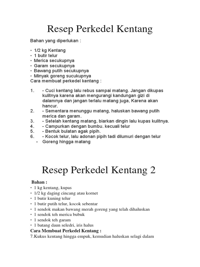 Culinary membagikan cara membuat perkedel yang anti gagal, sempurna dan yang rasanya bikin ketagihan. Langsung aja yuk ke bahan bahanya ya.bahan bahan. · 500 gr kentang · 1 butir telur ayam · 2 sdm bawang merah goreng atau 6 butir bawang merah, iris tipis, digoreng kering · 1 batang seledri. Perkedel kentang kornet ( 5 ) enak. Ada banyak makanan olahan kentang yang biasa disajikan atau.